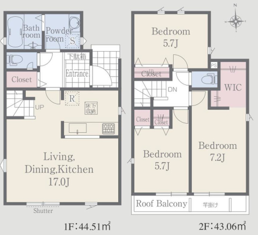 | 建物面積 | 86.94m2~87.57m2 | 土地面積 | 124.49m2~124.51m2 |
