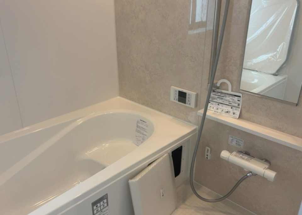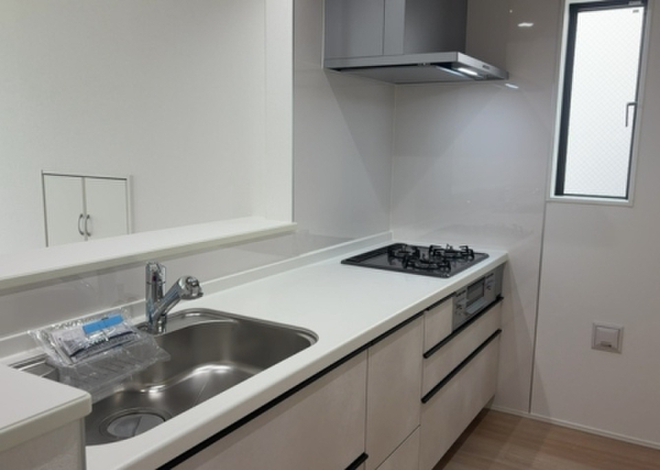 追焚機能設置の浴室なので翌日の入浴にも利便性が高いです。浴室乾燥機付きの物件は、乾燥するまでの時間も短縮されるので忙しくて洗濯物をためこんでしまう人にもおすすめです。システムキッチンは必要な物が組み込まれているため、すぐ調理できます。全居室6帖以上ですので、開放感のある演出ができます。生活を豊かにする様々な設備も充実した、新築の戸建て物件です。