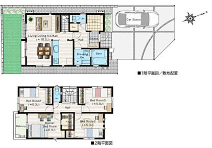 | 建物面積 | 94.39m2~96.26m2 | 土地面積 | 120.29m2~120.82m2 |