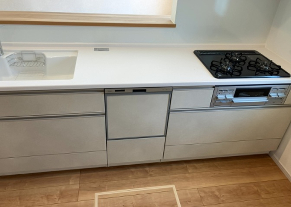 浴室乾燥機のあるお風呂場は洗濯物を干すときにも便利です。よく家で料理をするという方に嬉しいシステムキッチン付きの物件。新築戸建てで新生活を始めてはいかがでしょうか。