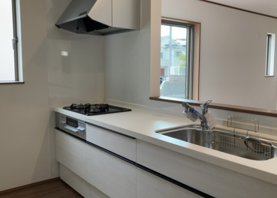 夢のマイホームは思い切って新築の戸建てはいかがでしょうか。94.81平米程の建物面積でスペースも十分。住みやすい空間の条件の1つに前面道路が6m以上あるところを入れてみては。浴室に窓があるのできれいな空気を浴室までお届けできます。1坪以上ある浴室は広々としていてお風呂好きの方におすすめです。来客が一目でわかるTVインターホン付き。システムキッチンは使いやすく汚れにくいのでご好評です。