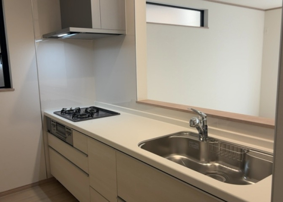 - デザイン性のあるシステムキッチン付きなので、キッチンがお洒落なスペースになっています。来訪者をモニターで確認できるTVインターホン付きです。浄水器は蛇口をひねるだけで、とても美味しいお水が飲めます。利便性に優れ、家族で暮らすにもピッタリな4LDKです。駅まで徒歩14分でアクセス可能です。94.8平米程の建物面積でスペースも十分。新築戸建てで新生活を始めてはいかがでしょうか。