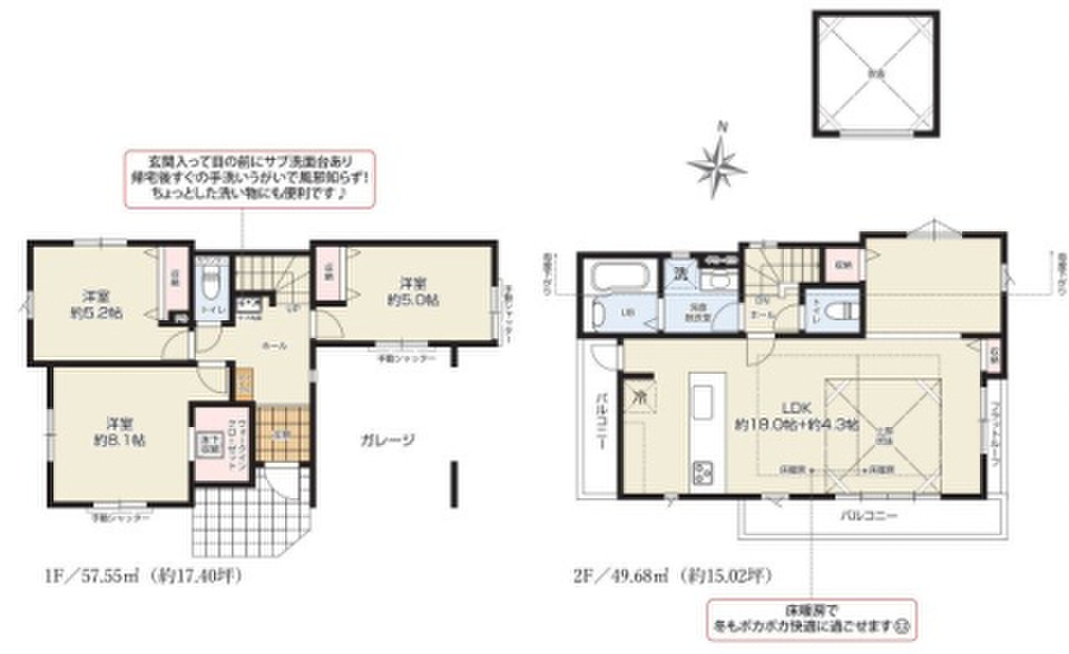 南側道路面す 洗髪洗面化粧台 フラット35Sに対応 全居室収納 浴室に窓