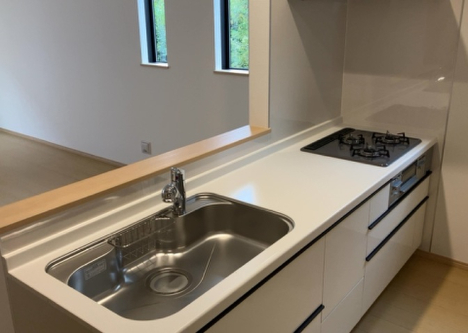 システムキッチンは必要な物が組み込まれているため、すぐ調理できます。建物面積が96.15m2でご家族での生活にも十分な広さの物件はこちらです。南向きの物件です。