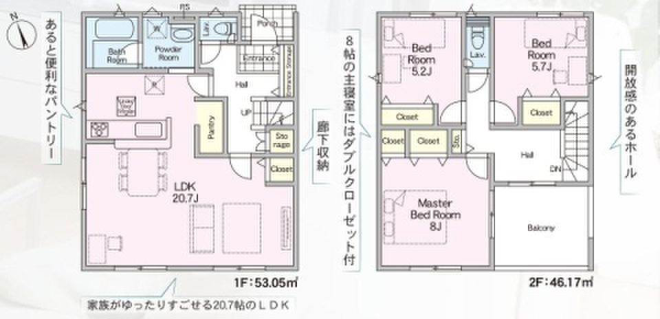 | 建物面積 | 95.58m2~99.22m2 | 土地面積 | 125.05m2~145.06m2 |