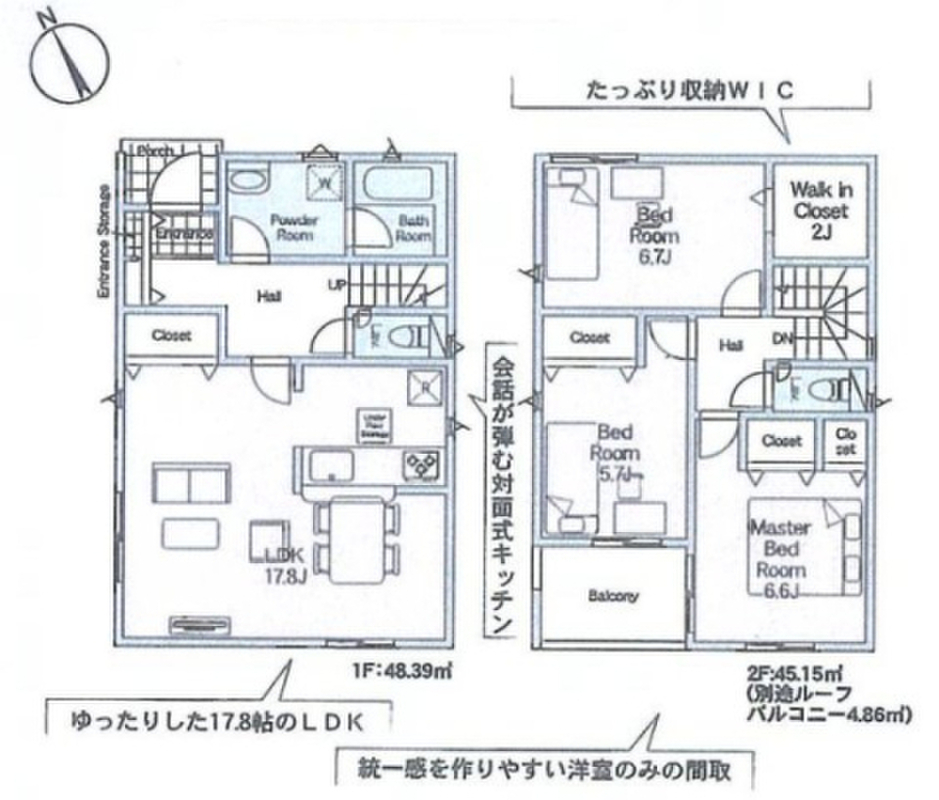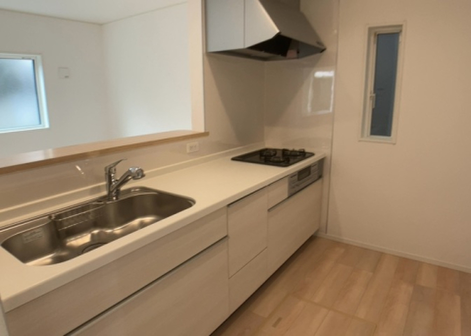 新築の戸建てで気分爽快な生活を送りましょう。建物面積93.14平米なので、使い勝手がいいです。素敵な全居室収納スペースはとても利便性の良い設備です。システムキッチンは使いやすく汚れにくいのでご好評です。さし湯をせずに沸かし直すことができる追焚機能付きの浴室です。顔が見える安心のTVインターホン付きです。ものが多くサービスルームが欲しい方にも嬉しい3SLDK。