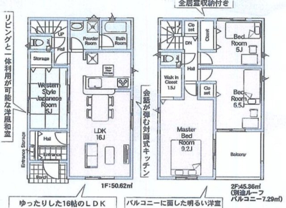 | 建物面積 | 92.34m2~96.38m2 | 土地面積 | 123.04m2~130.73m2 |