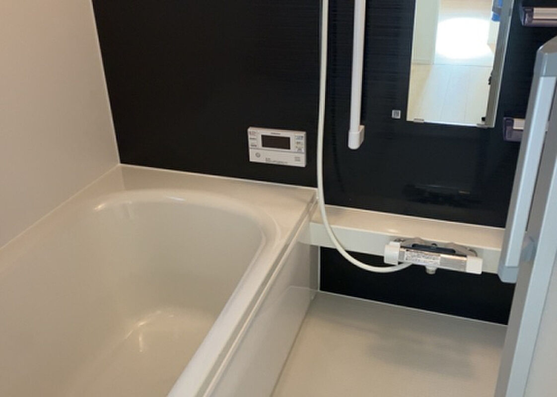 令和7年10月築の物件です。ニーズの高い設備である追焚機能が付いている浴室になります。顔が見える安心のTVインターホン付きです。