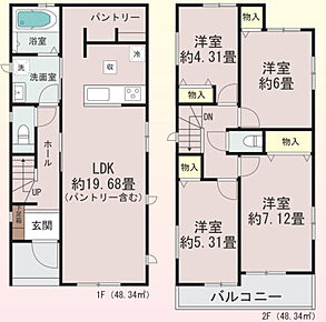 | 建物面積 | 96.68m2~99.57m2 | 土地面積 | 90m2~90.31m2 |