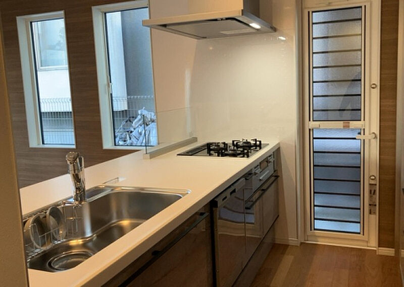 浴室乾燥機付きの物件なので、外に干したくない日でも浴室乾燥機を利用してバスルームに干せば効率よくカラッと乾きます。新築の戸建て物件です。宅配ボックスを利用すれば、配達時間を気にすることなく外出や入浴などの私生活を送ることができます。こちらの物件は南向きです。訪問者をカメラで確認できるTVインターホン設置済み。システムキッチンは必要な物が組み込まれているため、すぐ調理できます。