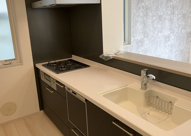 システムキッチンは使いやすく汚れにくいのでご好評です。浴室乾燥機のあるお風呂場は洗濯物を干すときにも便利です。新しい生活に心機一転、新築の戸建て物件はいかがでしょうか。