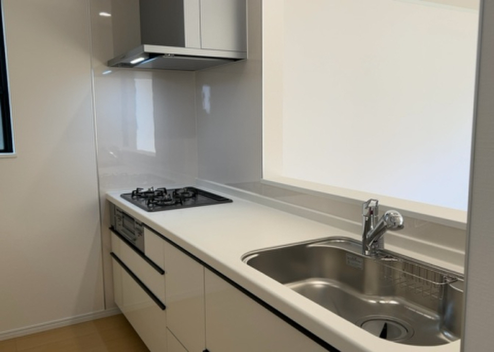 南向きの物件に住んでみませんか。こちらからご覧下さい。95.64m2の建物面積がある物件です。動線を意識したデザインのシステムキッチン付きで作業能率が上がります。