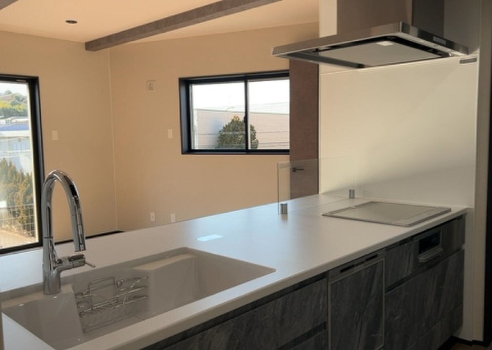 IHを使ったキッチンで、料理後の掃除も簡単です。追焚機能浴室は入浴時間がばらばらなご家族にオススメです。機能的で使いやすいシステムキッチン付きなので、お料理を楽しめます。
