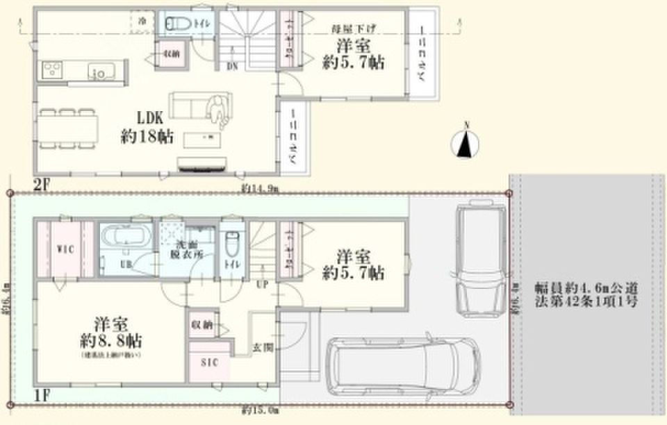 | 駐車場 | 1台 | 道路の幅員 | 東側4.6m |