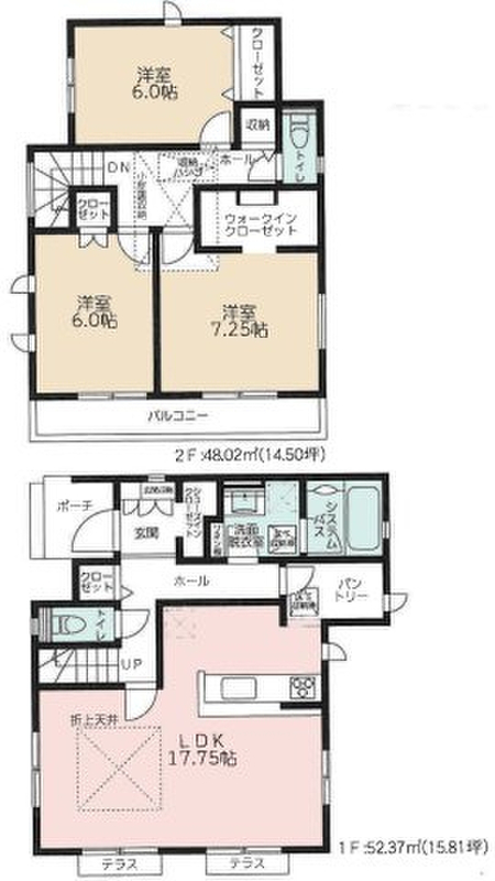 全居室フローリング 全居室収納 屋根裏収納 カードキー 駐車2台可