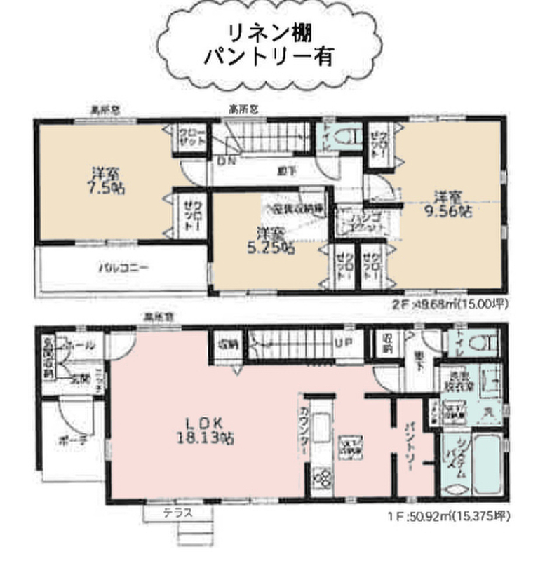 | 建物面積 | 100.19m2~101.64m2 | 土地面積 | 129.96m2~139.34m2 |