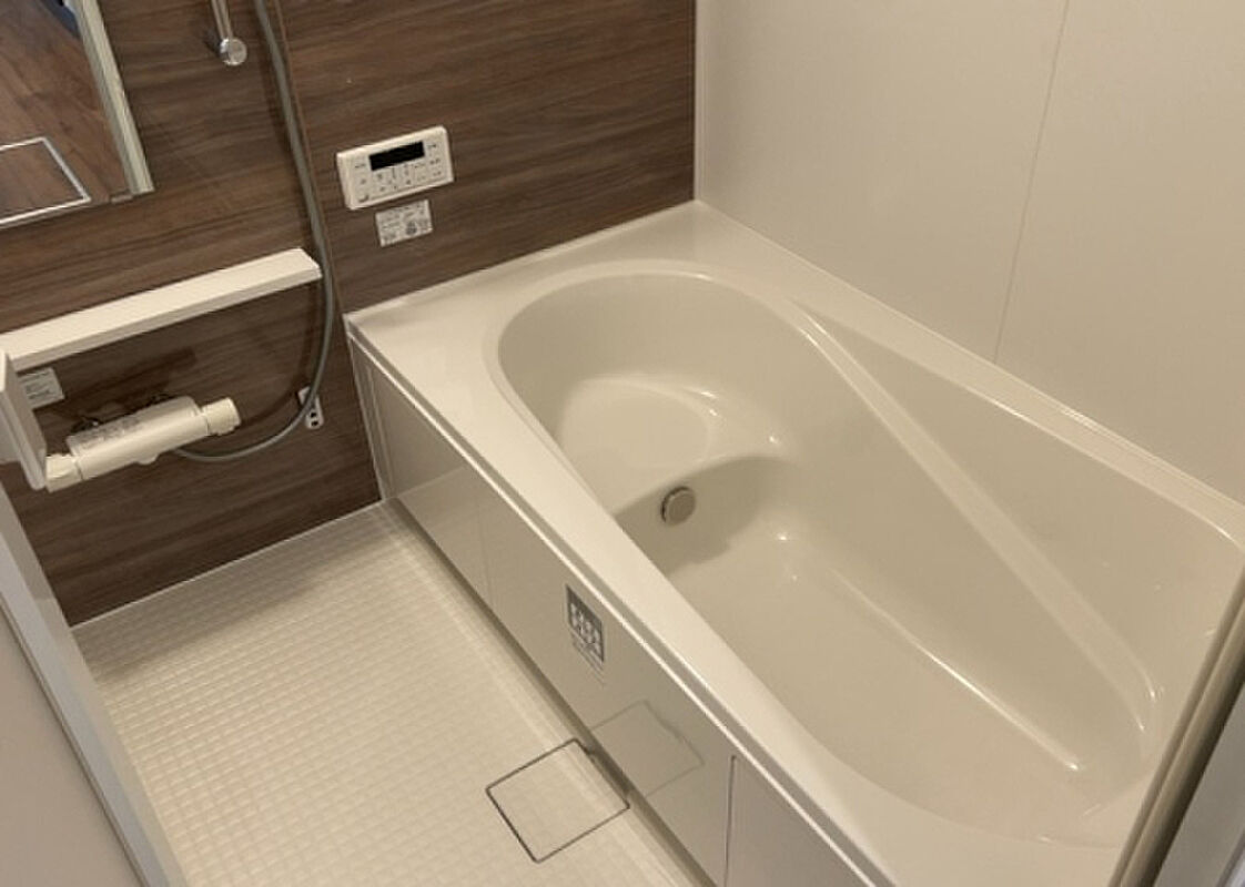 綺麗で清潔感のある室内が新築戸建ての特徴です。こちらは南向きの物件です。浴室は冷めた湯を再び沸かせる追焚機能が付いています。
