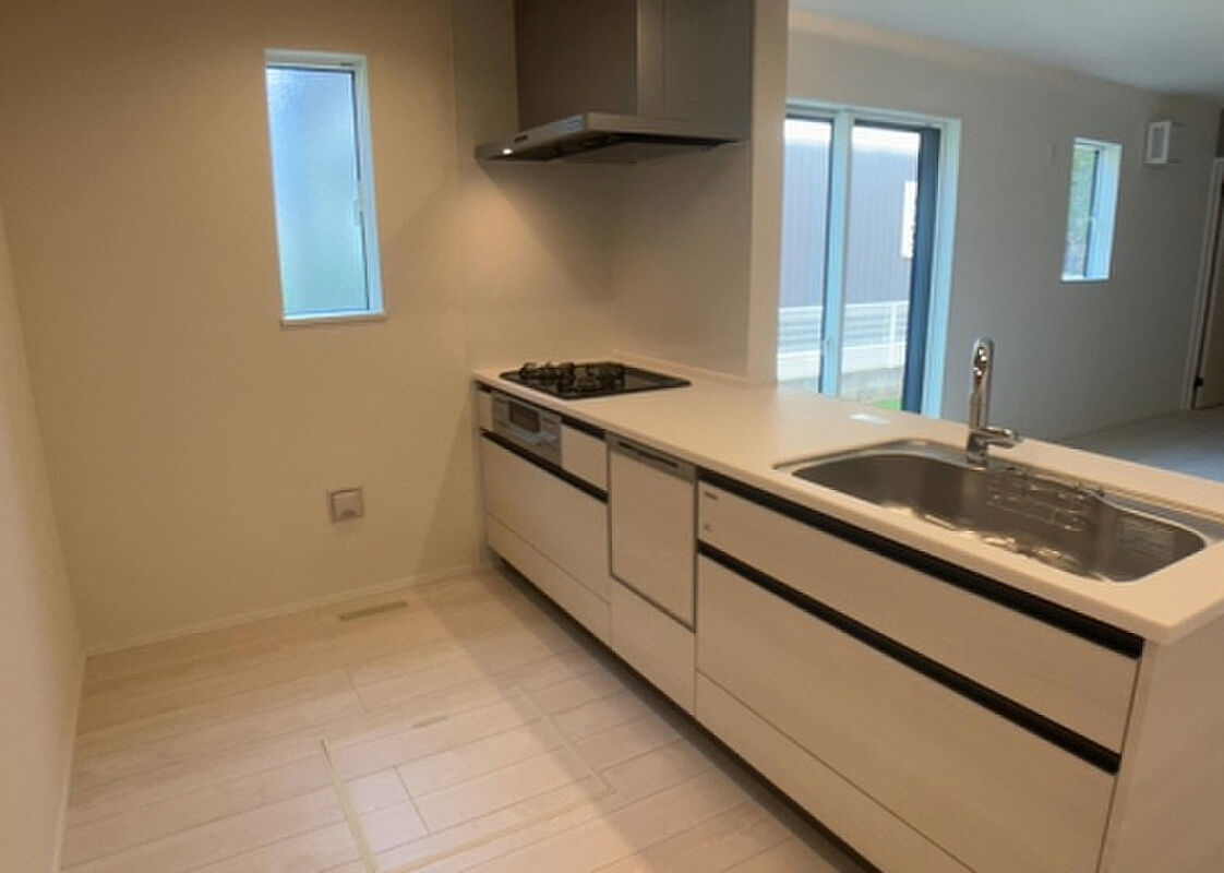 新築の戸建てで気分爽快な生活を送りましょう。モニターから顔が見えるTVインターホン付きです。日常生活で利用頻度の高い水回りだからこそ、使い勝手のいいシステムキッチンを選んでみませんか。