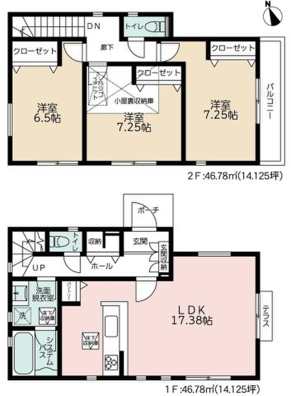 | 建物面積 | 93.56m2 | 土地面積 | 165.67m2 |
