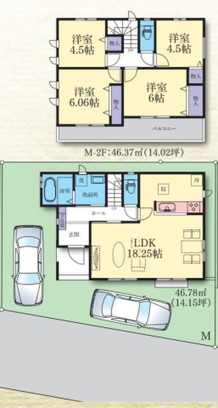 | 建物面積 | 93.15m2~96.87m2 | 土地面積 | 102.62m2~185.54m2 |