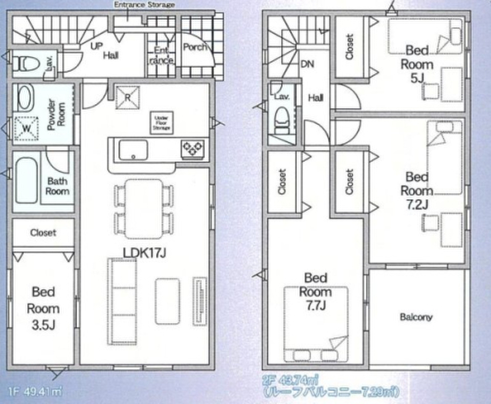 | 建物面積 | 91.53m2~96.38m2 | 土地面積 | 165.17m2~165.22m2 |