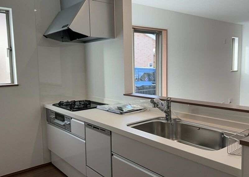 システムキッチンは使いやすく汚れにくいのでご好評です。浴室乾燥機のあるお風呂場は洗濯物を干すときにも便利です。初めてのマイホームに新築戸建てはいかがでしょうか。
