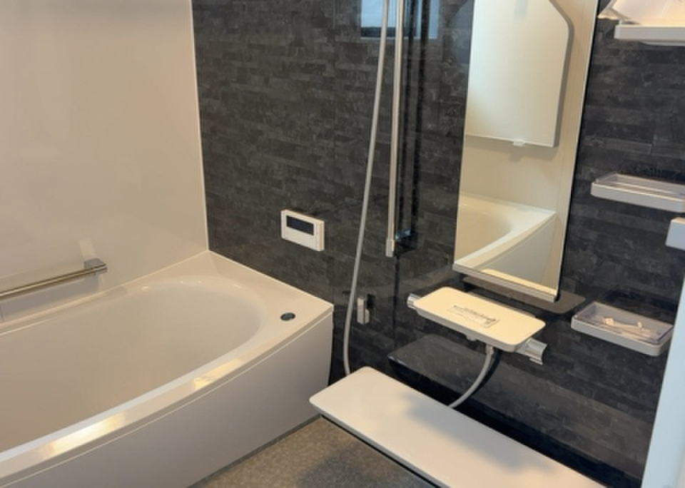 追い焚き機能付の浴室です。新築物件で新たな生活をスタートさせてみませんか。環境にやさしい太陽光発電システムでエコな生活を送りましょう。