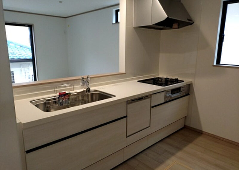 こちらはTVインターフォン付きの物件です。2025年9月築の物件で、多くのお問い合わせをいただいております。新築にこだわりをもつ方には、こちらの新築物件はいかがでしょうか。新築戸建てで新生活を始めてはいかがでしょうか。動線を意識したデザインのシステムキッチン付きで作業能率が上がります。浴室乾燥機のあるお風呂場は洗濯物を干すときにも便利です。