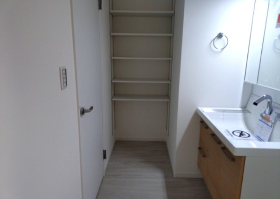 浴室乾燥機のあるお風呂場は洗濯物を干すときにも便利です。開放感溢れる室内が魅力の、4LDKの物件はこちらです。南向きの物件です。