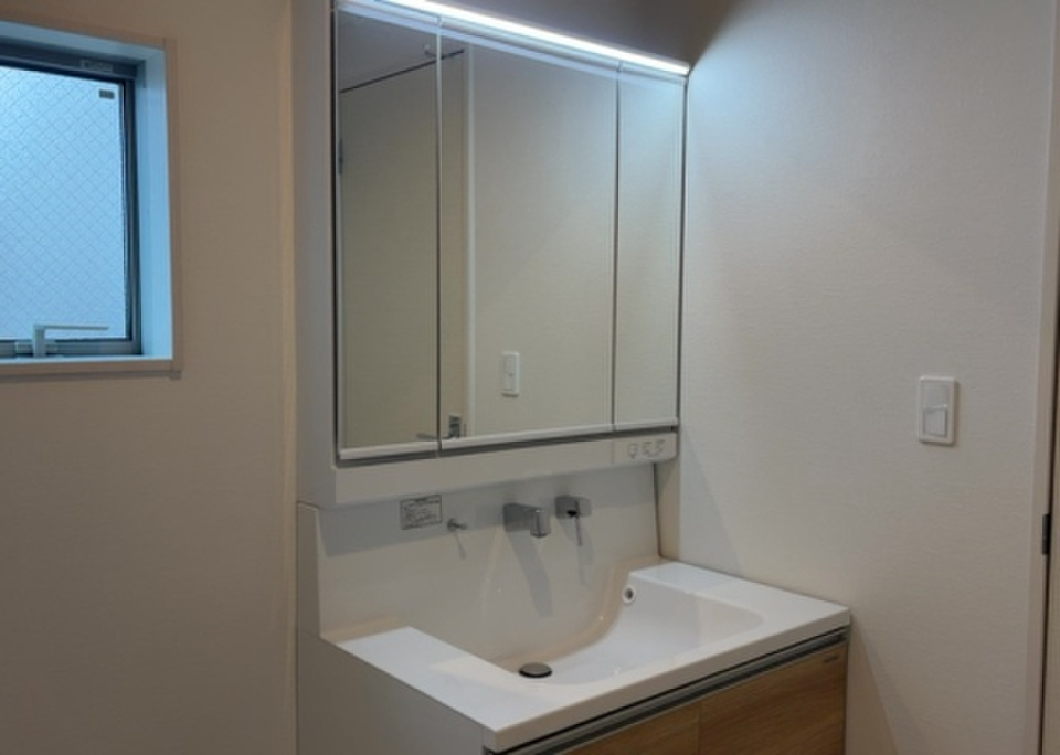 歩道には幅広な整備がされているので、安全に人の往来ができます。来訪者を確認できる、TVインターホン付きです。家族におすすめな3LDK。設備も充実しています。綺麗で清潔感のある室内が新築戸建ての特徴です。システムキッチンは必要な物が組み込まれているため、すぐ調理できます。追い焚き機能付の浴室です。洗濯物がよく乾く南東向きがオススメポイントです。