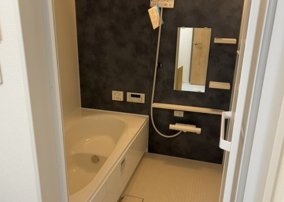 浴室乾燥機のあるお風呂場は洗濯物を干すときにも便利です。多くの方に好評の、2026年3月築の物件です。訪問者をカメラで確認できるTVインターホン設置済み。