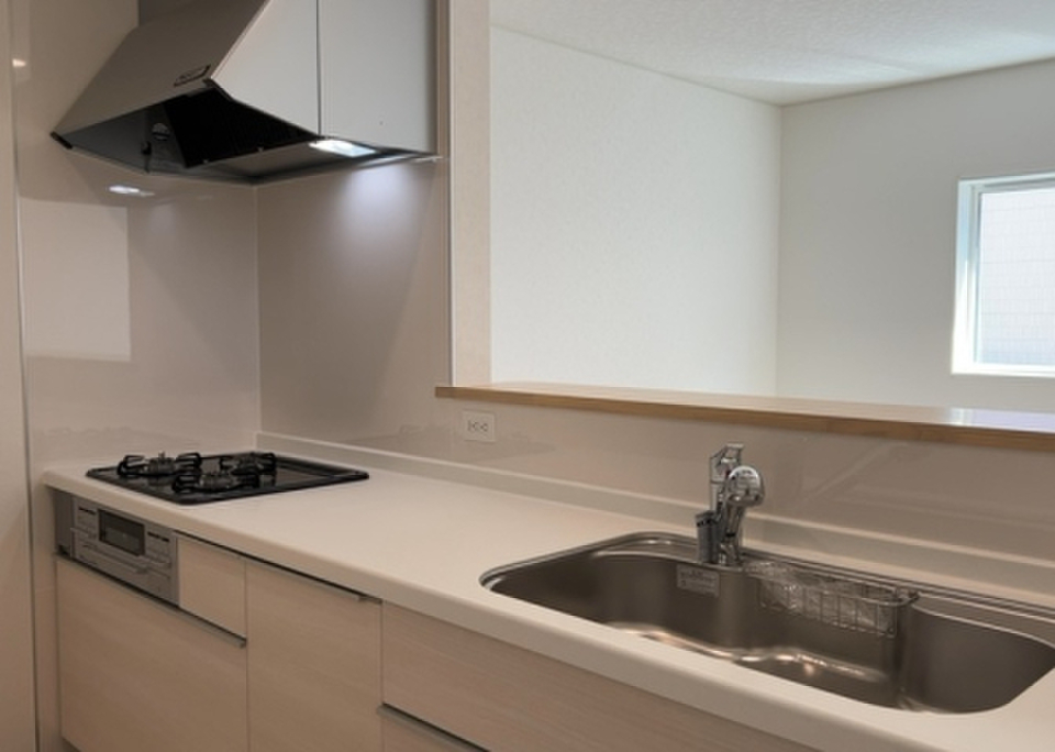 新築の戸建てで気分爽快な生活を送りましょう。システムキッチンは使いやすく汚れにくいのでご好評です。93.15m2の建物面積でスペースの面でも問題なく快適に過ごせますよ。