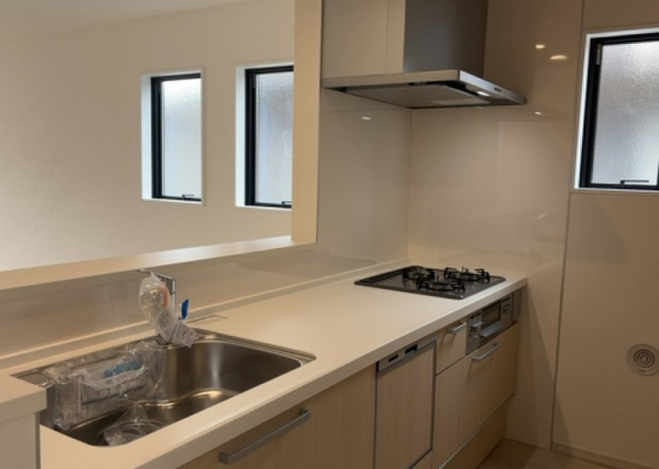陽射しの入りも方角によって変わります。南東向きの物件です。きれいで使い勝手の良いシステムキッチン付きの物件になります。生活を豊かにする様々な設備も充実した、新築の戸建て物件です。