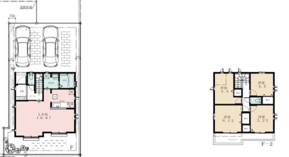 2号棟 間取り 4LDK 価格 3090万円 建物面積 壁芯96.05m2 土地面積 公簿125.22m2 -