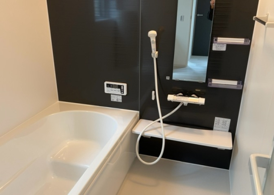 寒い時期に活躍する追焚機能付きの浴室がある物件です。南向きの物件をお探しの方、コチラよりご覧ください。浴室乾燥機のあるお風呂場は洗濯物を干すときにも便利です。