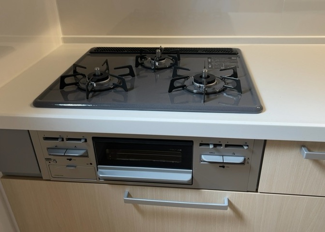 キッチンIH調理器を使用しています。使い勝手が良いシステムキッチンがある物件です。浴室乾燥機のあるお風呂場は洗濯物を干すときにも便利です。
