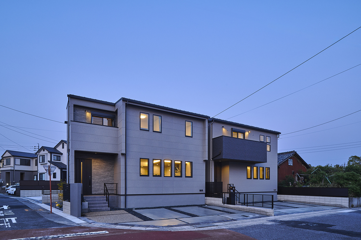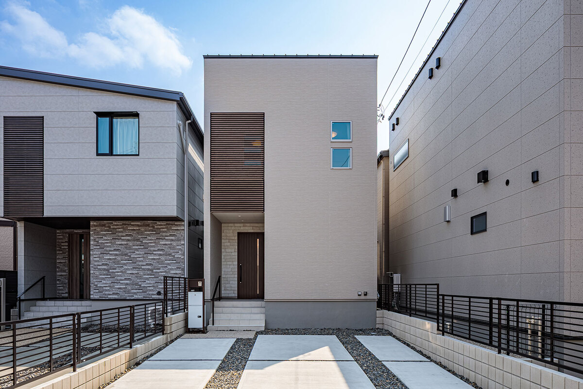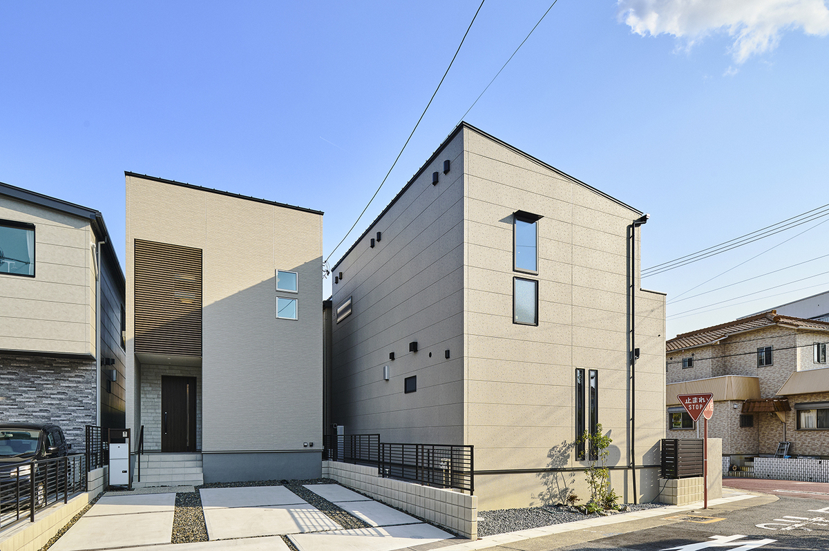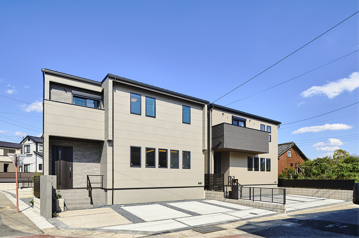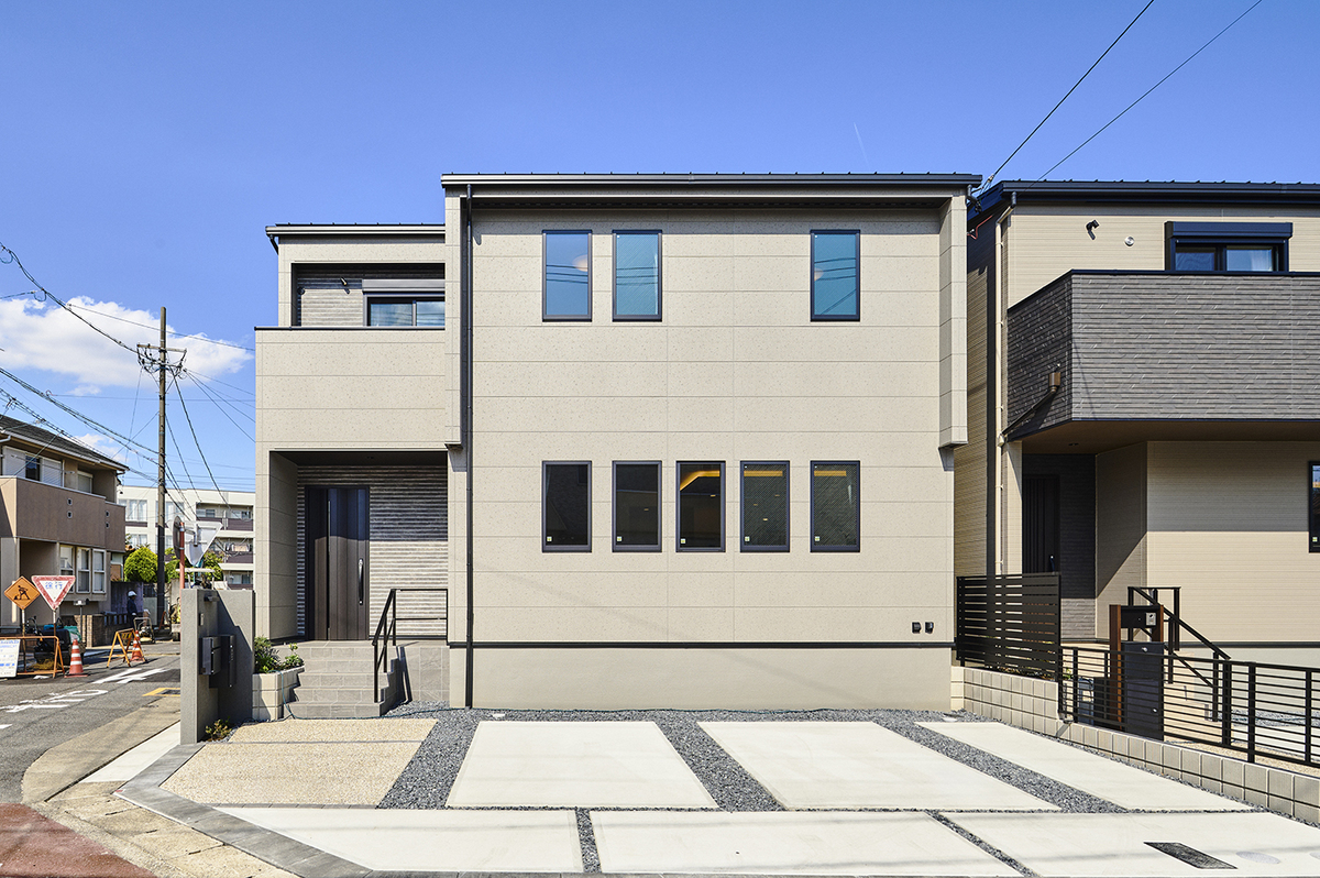 機能美と自然が調和する美景を描き、心地よく暮らせる住空間をデザインした玉善の分譲住宅。