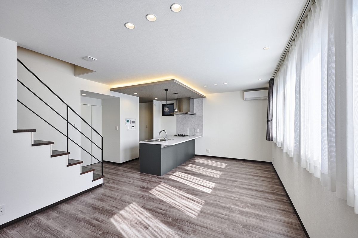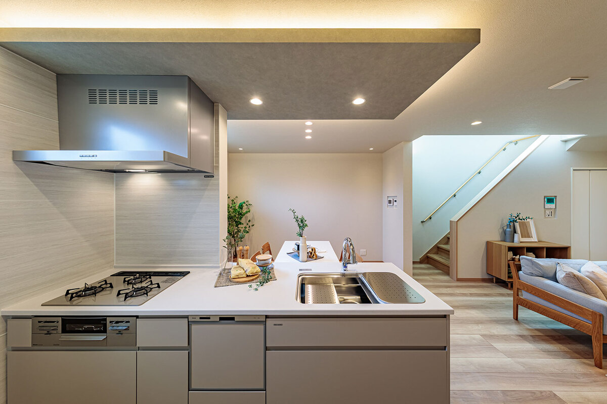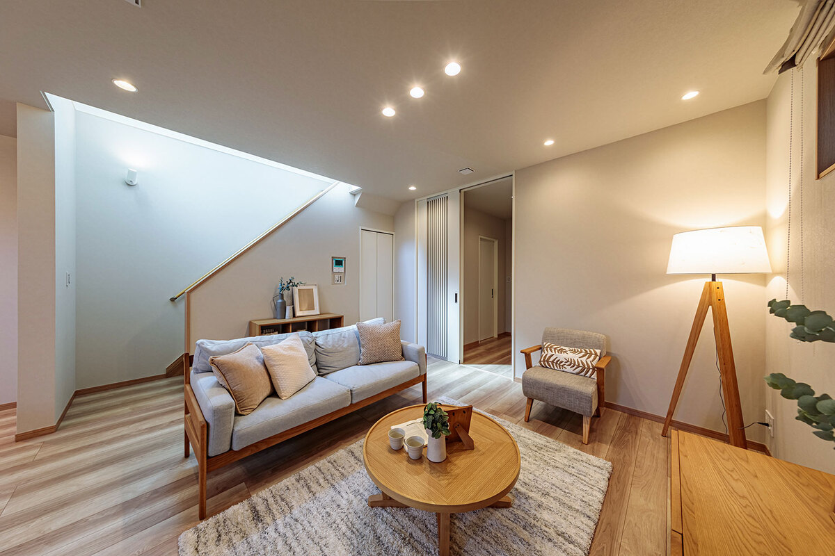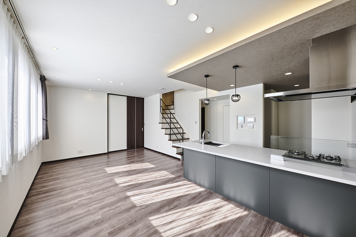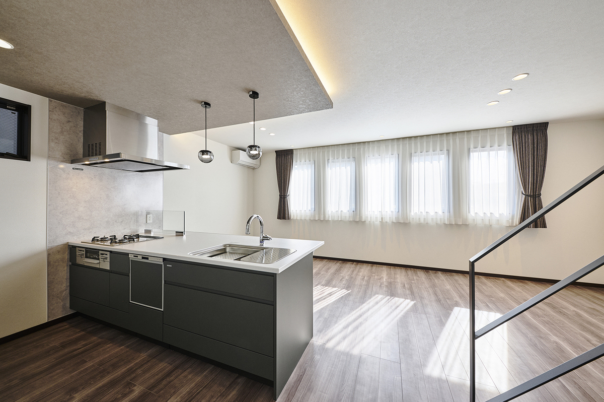 機能美と自然が調和する美景を描き、心地よく暮らせる住空間をデザインした玉善の分譲住宅。