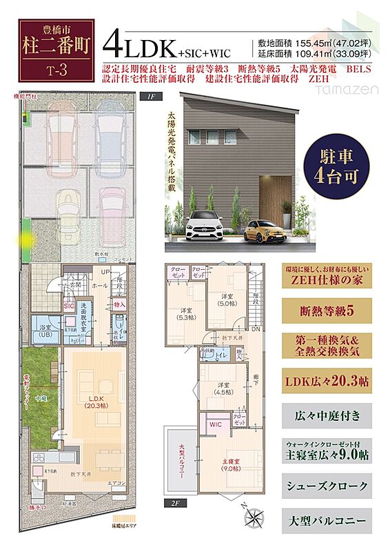 | 建物面積 | 109.41m2 | 土地面積 | 155.45m2 |