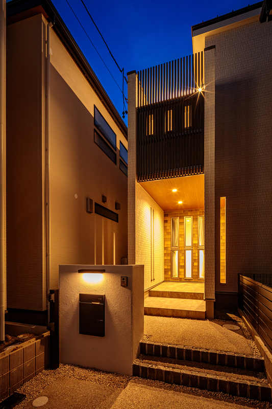 機能美と自然が調和する美景を描き、心地よく暮らせる住空間をデザインした玉善の分譲住宅。