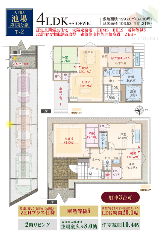 魅力1 住宅性能評価・長期優良住宅W取得。ZEH仕様&BELS取得の優しい住まい。