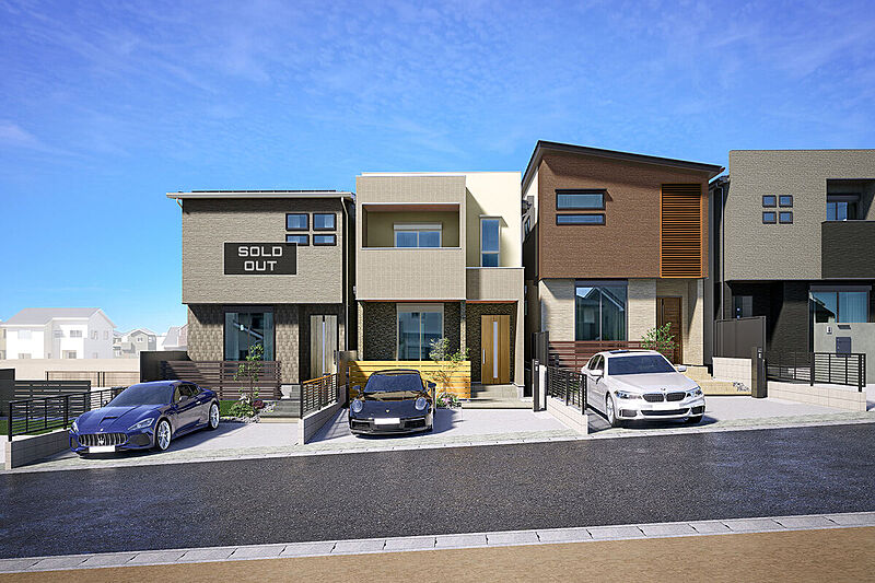 陽当たり良好な南向きの土地を選定し、全て異なったデザインと外構で構成。