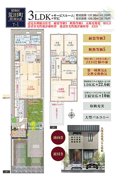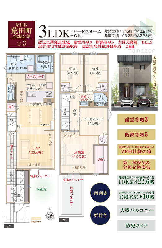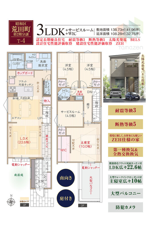魅力2 南向き&庭付き&ZEH仕様&フラット対面キッチン付広々LDK&防犯カメラ付き