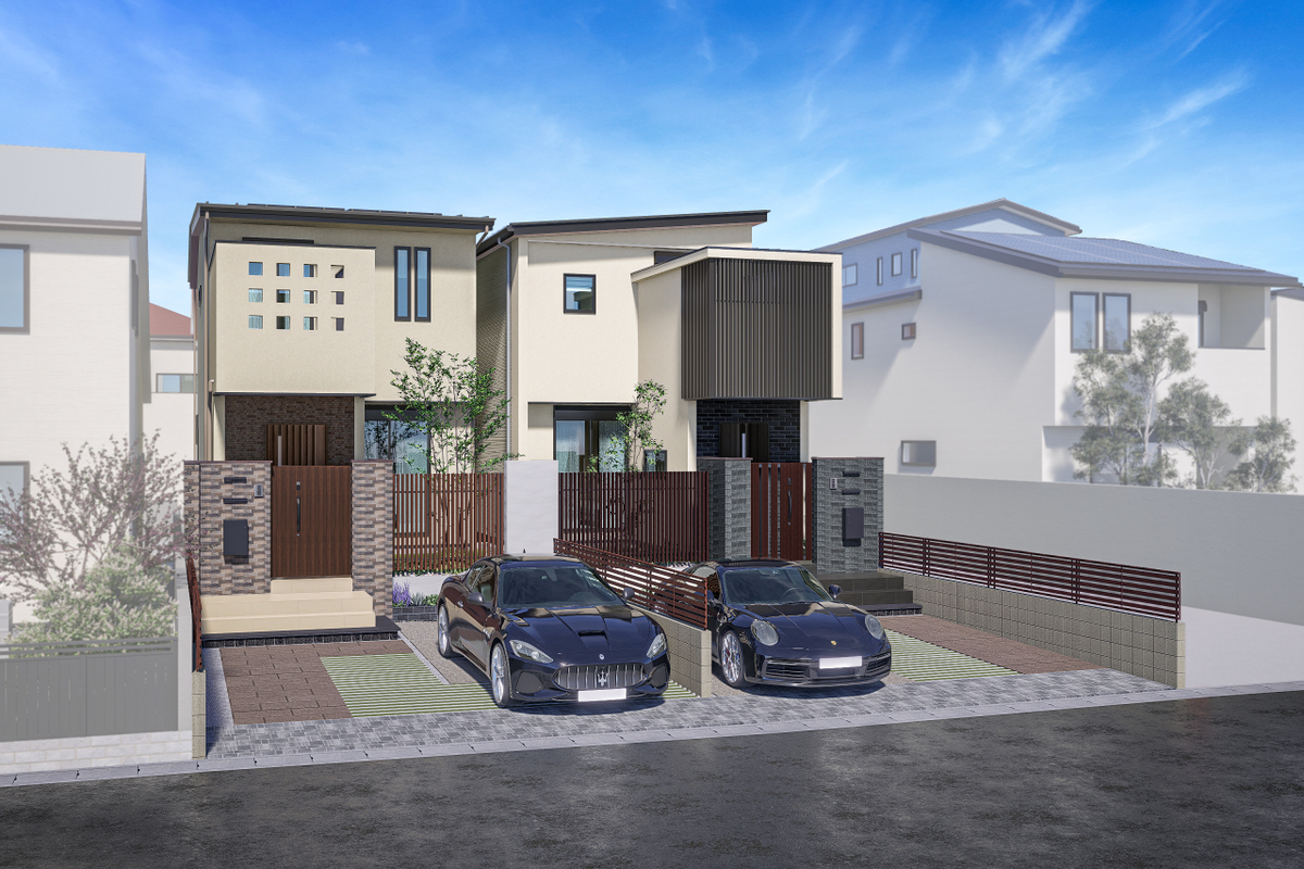 - ※完成予想図やCG合成画像は、門塀・植栽・庭・外観等、実際とは多少異なる場合があります。