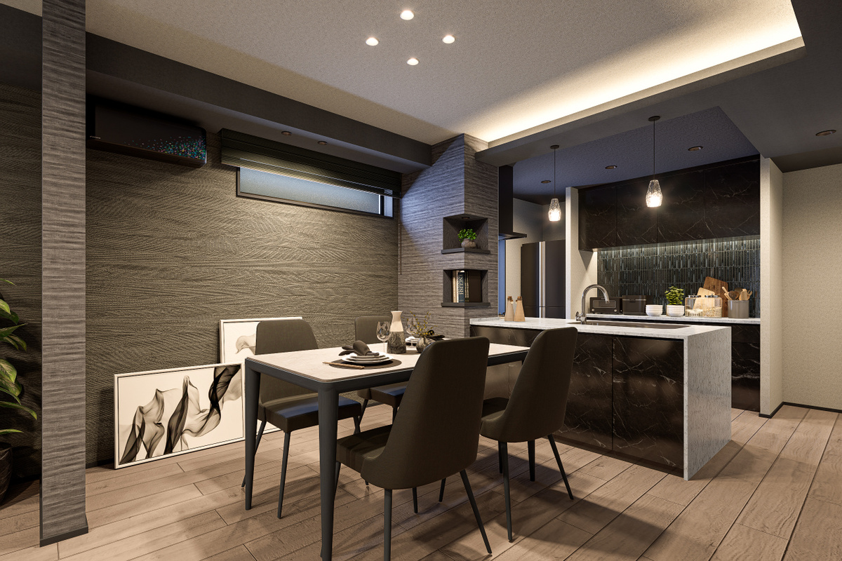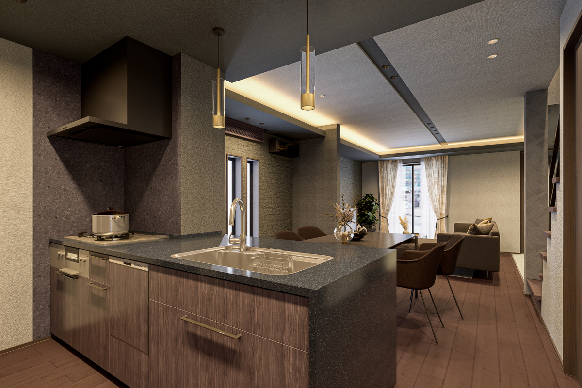 機能美と自然が調和する美景を描き、心地よく暮らせる住空間をデザインした玉善の分譲住宅。