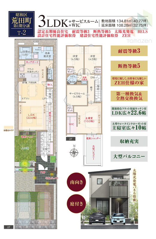 | 建物面積 | 108.28m2(32.75坪) | 土地面積 | 134.81m2~138.73m2(40.77坪~41.96坪) |