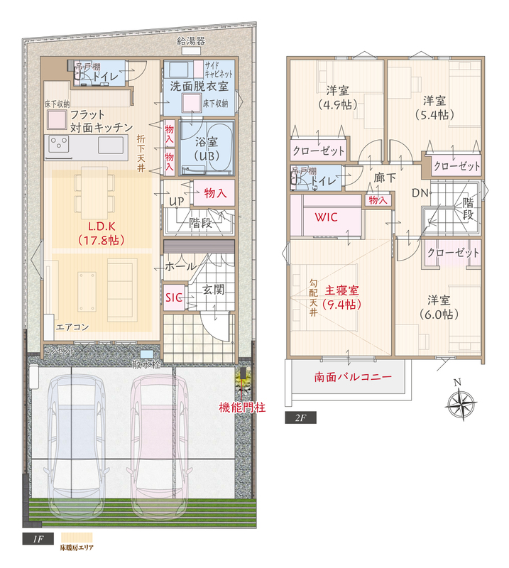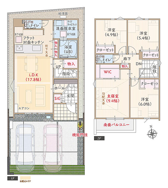 LDKエアコン/全居室カーテン&LED照明/省エネ給湯器「エコジョーズ」/浴室暖房乾燥機/床暖房/玄関大型姿見/電気自動車充電用コンセント/スマートキーなど充実の標準装備