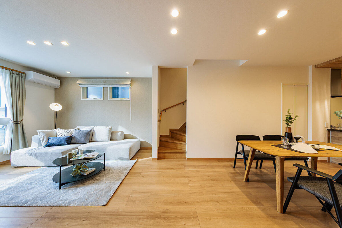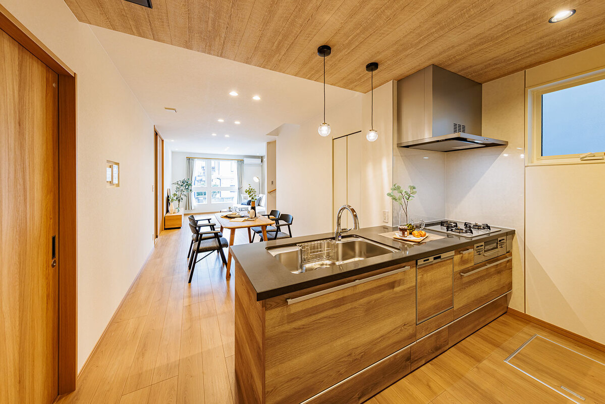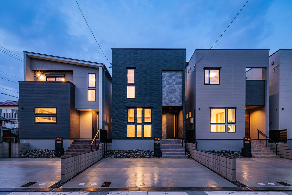 機能美と自然が調和する美景を描き、心地よく暮らせる住空間をデザインした玉善の分譲住宅。