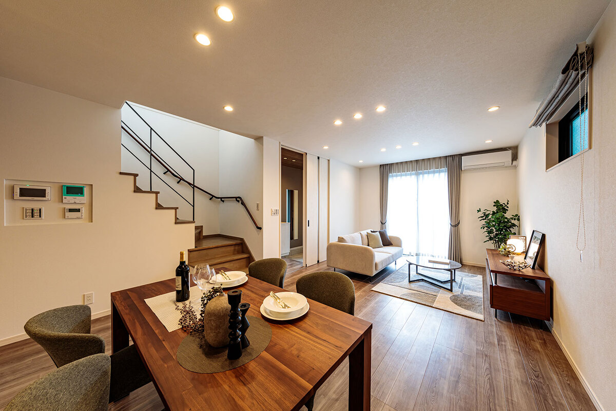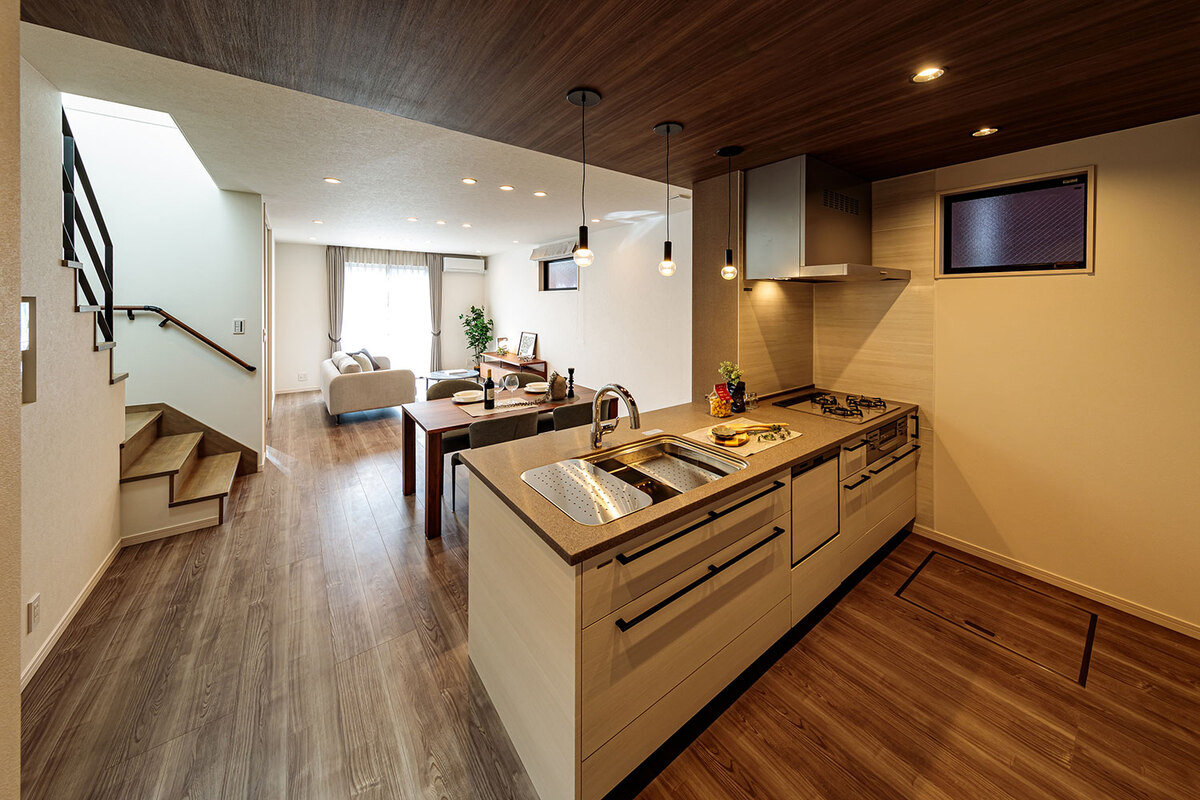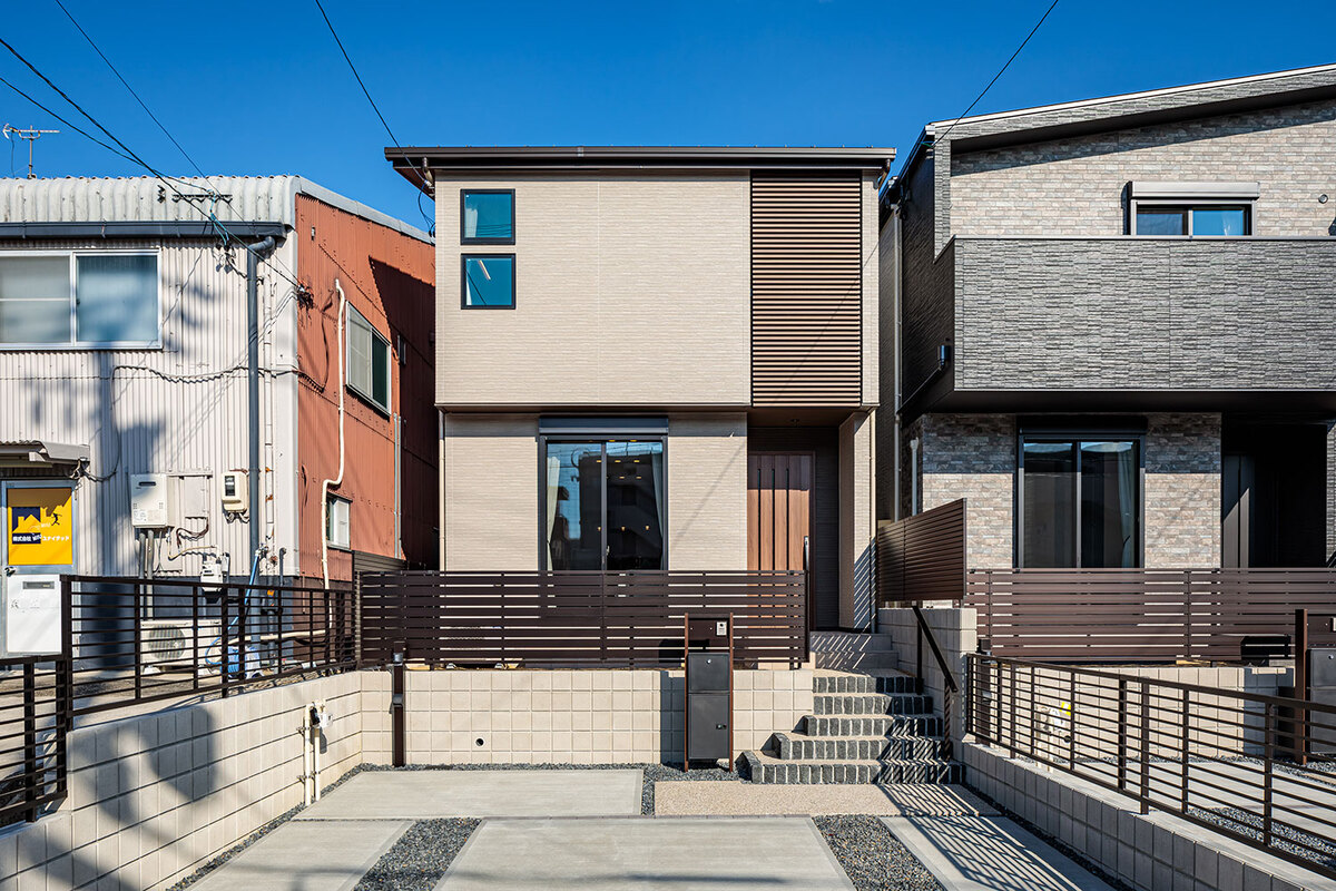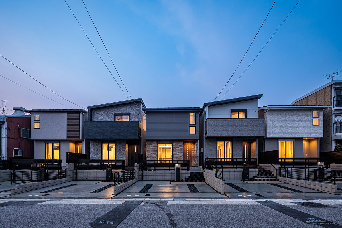 機能美と自然が調和する美景を描き、心地よく暮らせる住空間をデザインした玉善の分譲住宅。