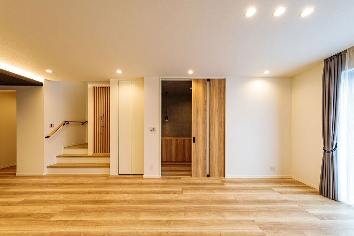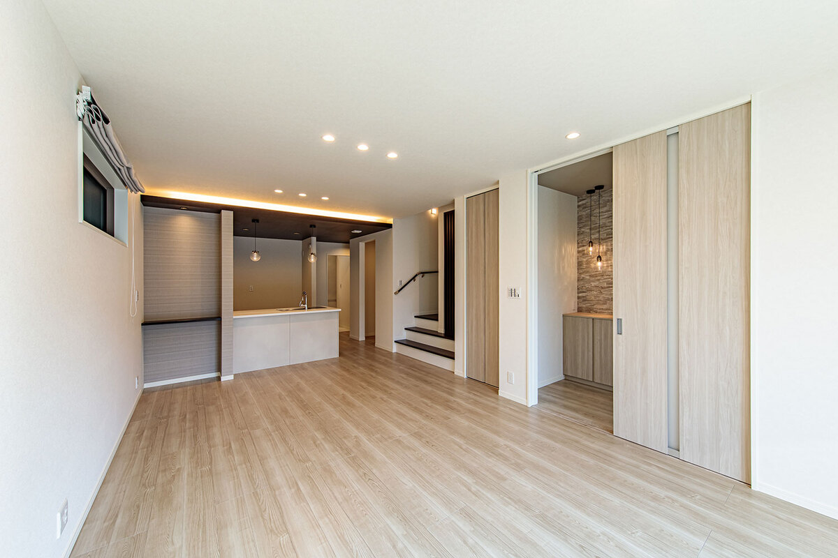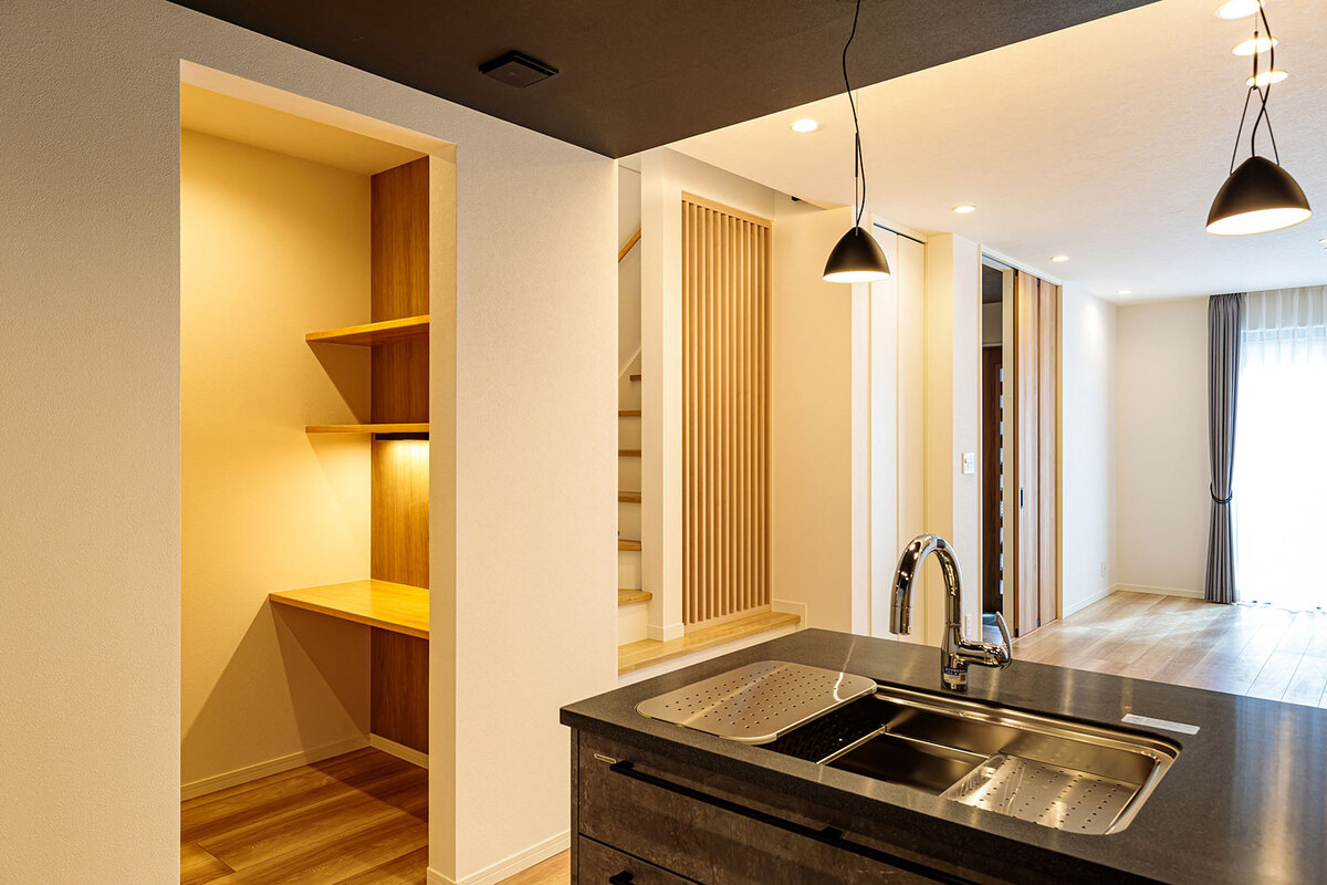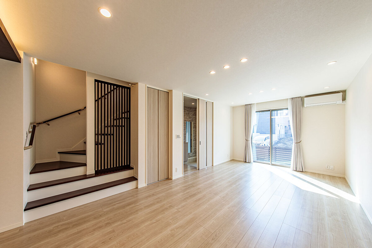 機能美と自然が調和する美景を描き、心地よく暮らせる住空間をデザインした玉善の分譲住宅。